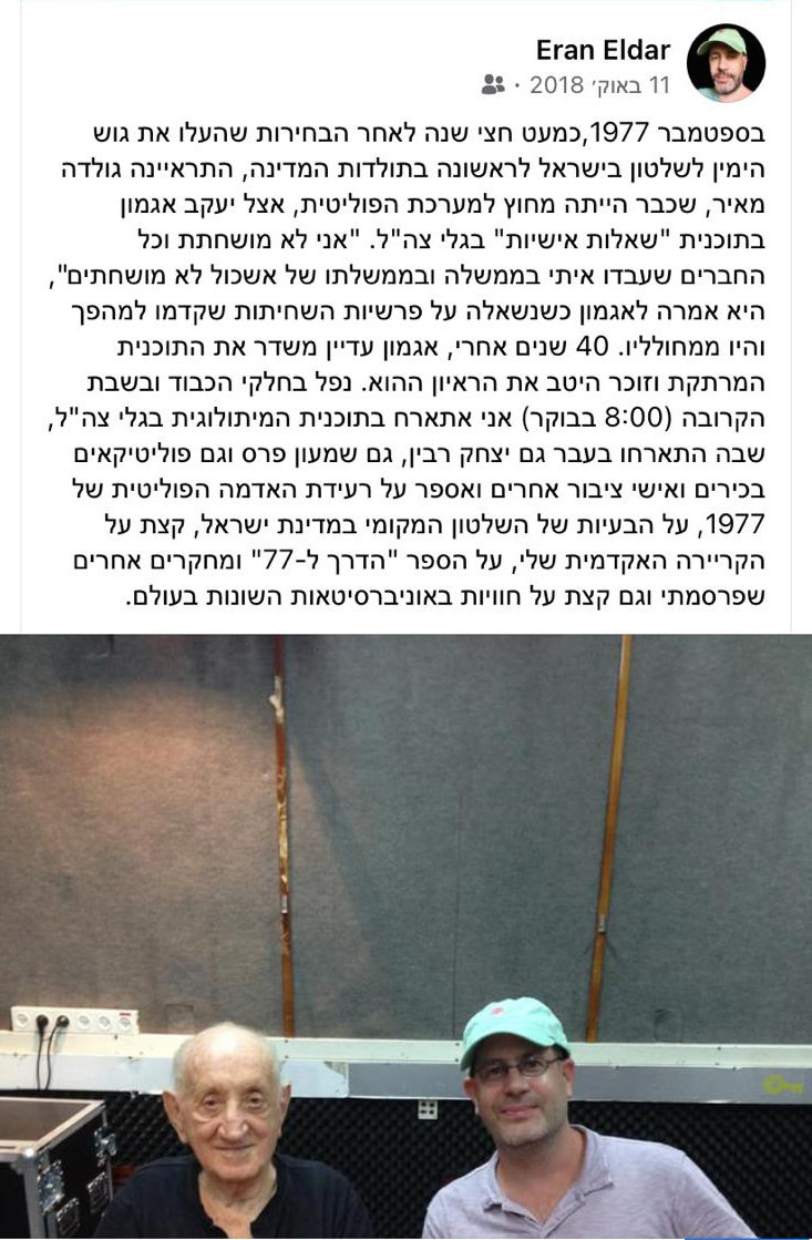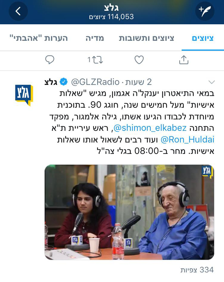 תמונות מראיון של אגמון בגלי צה"ל (יוזמה של מפקד התחנה שמעון אלקבץ) בהגיעו ל-90 >>