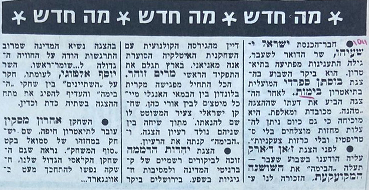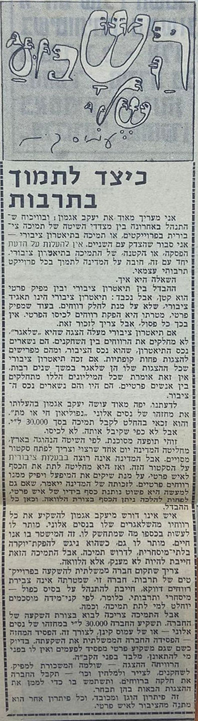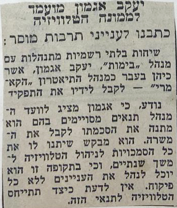 יעקב אגמון פתח משרד הפקות עצמאי, ציפי שוחט, הארץ, 19.7.2005