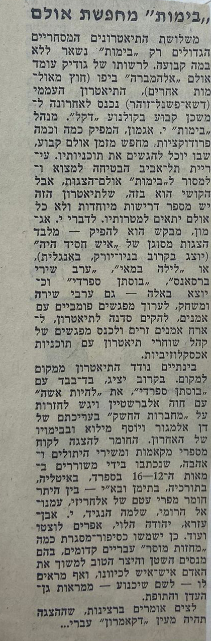 פרס יעקב אגמון: האיש שהיה שם, מירב יודילוביץ', הבמה, 1.10.2023