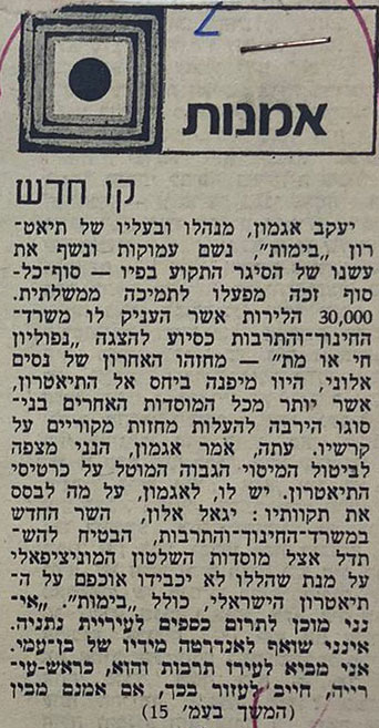 יעקב אגמון מונה למנכ"ל התיאטרון הערבי-עברי ביפו, ציפי שוחט, הארץ, 1.11.2010