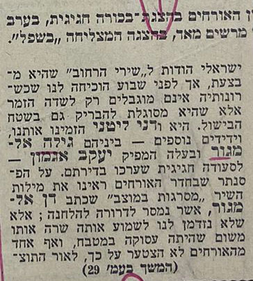 "אפשר לסכם שמירי רגב לא הפריעה לי, אבל הצחיקה אותי", מאיה כהן, ישראל היום, 4.5.2019