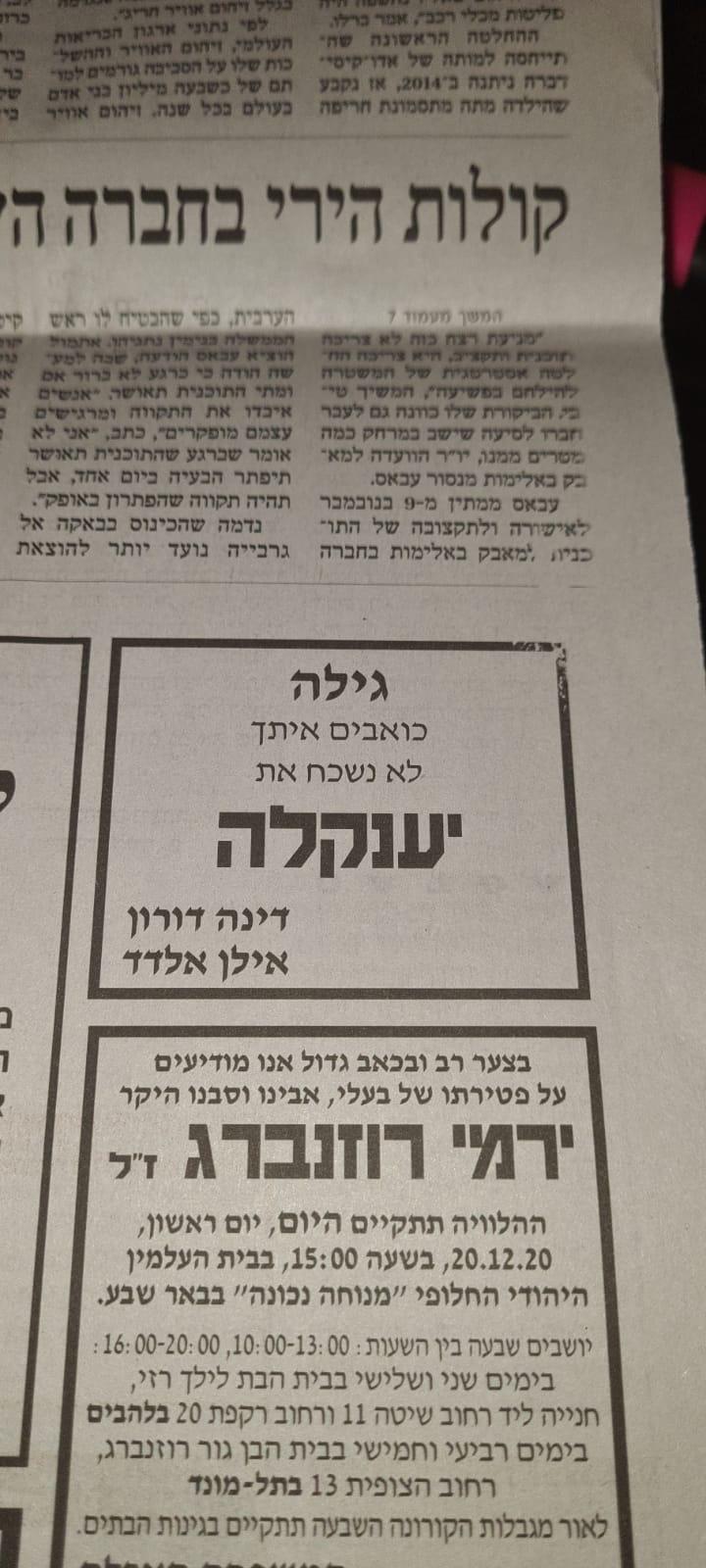 "אבא היה האהבה הכי גדולה שלי", יואב בירנברג, ידיעות אחרונות, 20.1.2021