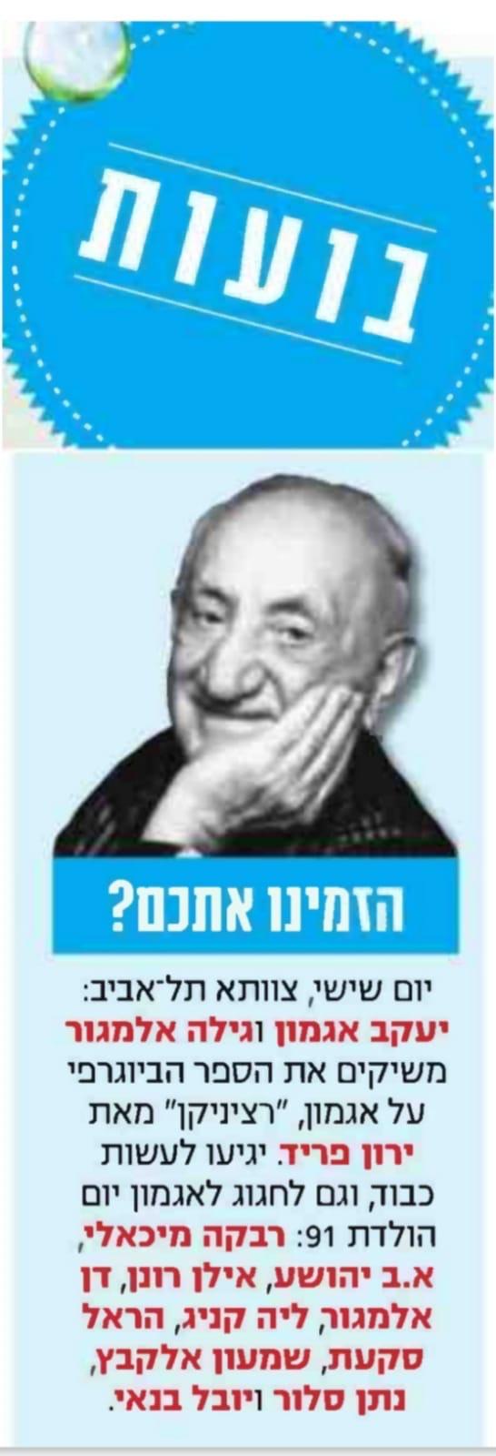 ״מה אני נראה לך, פרנק סינטרה?". פרק מהביוגרפיה על יעקב אגמון, ירון פריד, מעריב, 17.12.2020